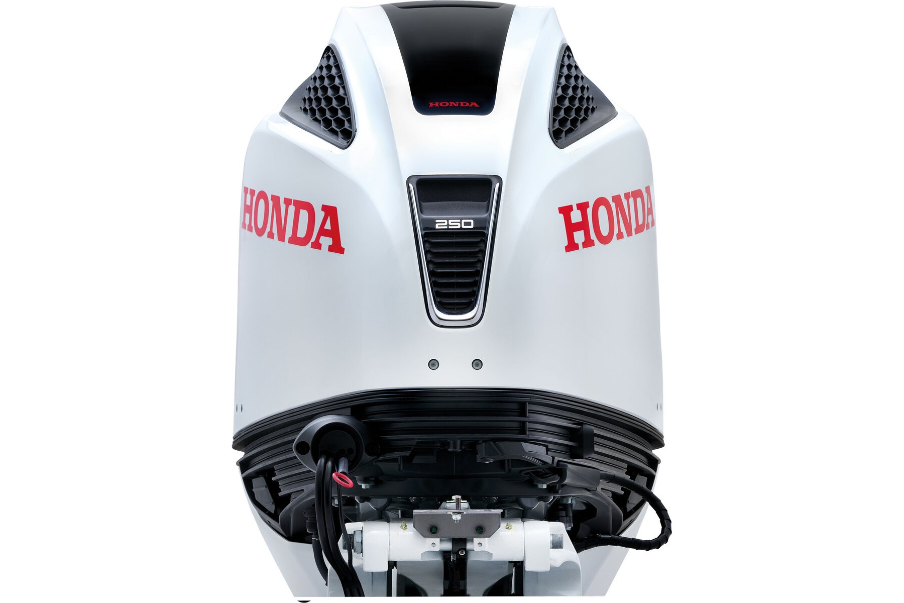 BF250 er den kraftigste motoren i Honda-familien og resultatet av 50 år med forskning og utviklingsarbeid. Designet illustrerer Hondas teknologiske, driftsmessige og miljømessige fortreffelighet. Den estetiske formen er slankere, og motordekselet har en skarpere og mer kantete profil, med detaljer i krom som formidler kraft og fart.