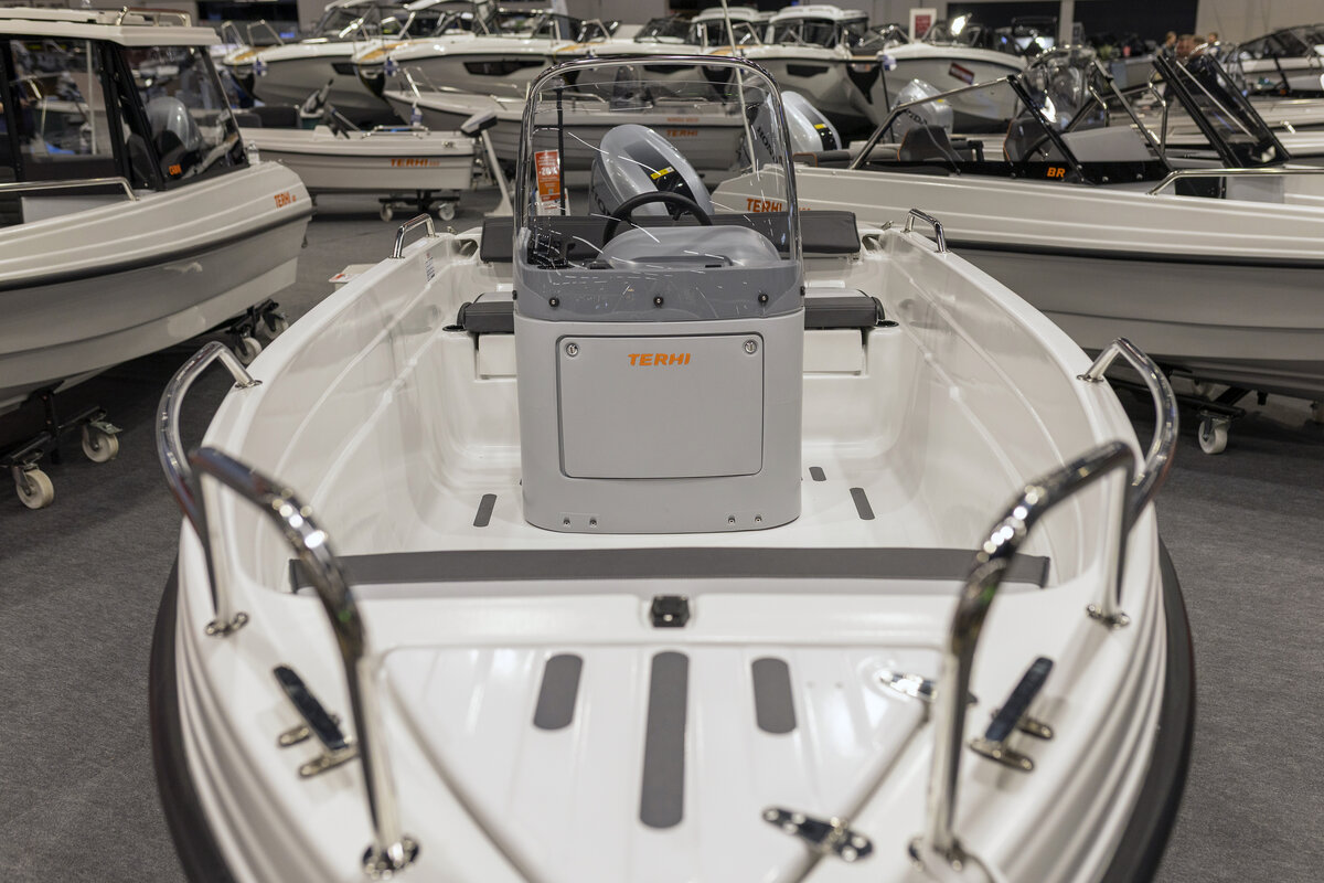 Terhi 480 CC er en romslig og praktisk åpen båt med midtkonsoll, basert på det velprøvde 480-skroget. I motsetning til de øvrige modellene i serien leveres 480 CC med et stilrent, grått skrog. De store, åpne dekksflatene gir gode arbeidsforhold og gjør det enkelt å bevege seg rundt i båten.